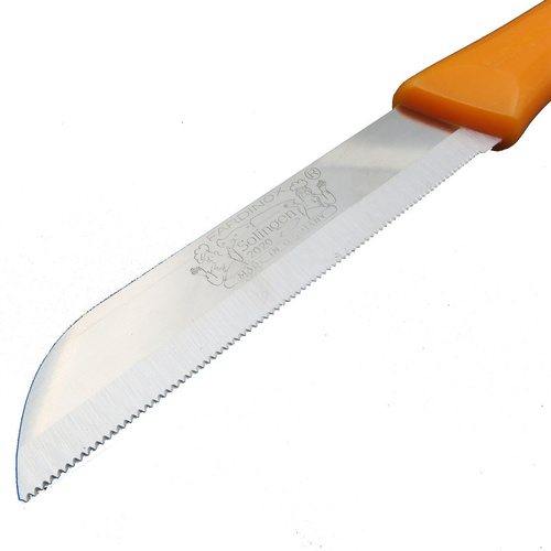 چاقو های اصلی مارک فردینوکس ساخت آلمان، را می توان جزو قدیمی ترین و همچنین تیز ترین چاقو های دنیا دانست، چرا که این مدل با داشتن تیغه استیل ضد زنگ و دسته های این کارد از جنس پلی پروپیلین ضد حساسیت و آنتی باکتریال است و به هیچ عنوان شکسته و یا از تیغه جدا نمی شود ، مدلی بسیار کارآمد برای تمام مصارف خانگی بوده که شما را از داشتن یک چاقوی تیز و و مقاوم بی نیاز خواهد نمود. این چاقو ها به صورت تکی عرضه شده و شما می توانید به صورت انتخابی هر یک از چند رنگ: نارنجی ، زرشکی ، سرمه ای ، سفید ، بنفش را انتخاب و تهیه نمایید. لازم به ذکر است این مدل ساخت کشور آلمان بوده و علامت برند Solingen-fardinox حک شده است و همچنین Made in Germany روی تیفه آن درج شده است که می تواند خیال شما را از داشتن یک چاقوی بسیار با کیفیت و همچنین ماندگار تامین نماید و به هیچ عنوان شکسته و یا از تیغه جدا نمی شود کیفیت تیغه این کارد به بیش از 20 سال عمر مفید دارند. کیفیت شایسته ایرانی است . از خرید تان لذت ببرید .